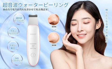 - 【超音波ピーリング&イオン導出】毎秒26000回の超音波振動でミスト化した水の細かい粒子が、毛穴汚れや古い角質を取りのぞきます。いつもより肌がつるつるになりました。また、普段の洗顔で落としきれない毛穴や繊細な汚れを、プラスイオンのカで吸着して取りのぞく「イオン導出」機能付き、スキンケア成分がより浸透しやすくなります。